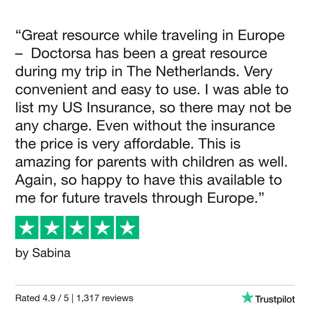 This service saved me time and stress and was very fairly priced. If you’re ever in The Netherlands—or anywhere else abroad—and need quick, high-quality care, I can’t recommend Doctorsa enough!